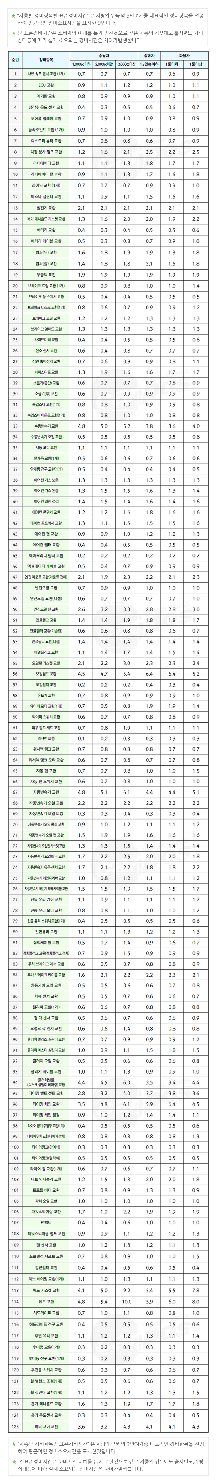 을 위해 자동차 주요 정비작업의 시간당 공임 및 표준정비시간을 알립니다.